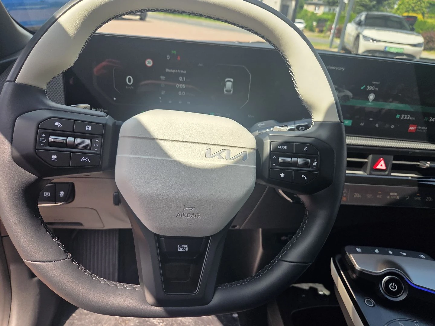 - • Trójramienna, wielofunkcyjna kierownica wykończona skórą wegańską o sportowej stylistyce