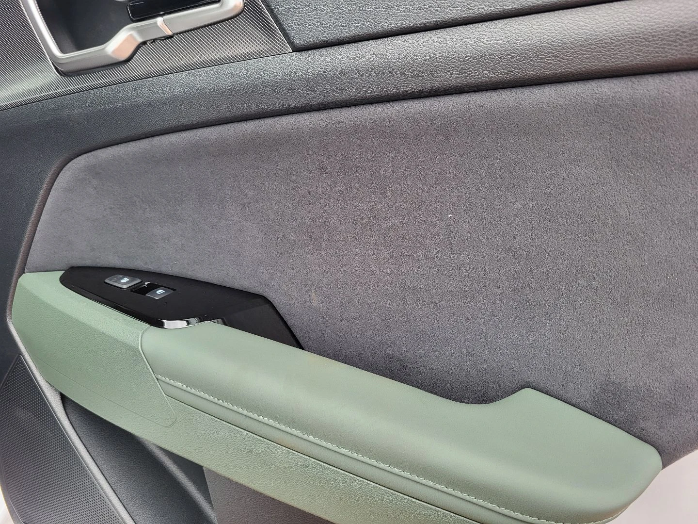 - ▪ Tapicerka materiałowo - skórzana (skóra ekologiczna) w kolorze zielono - czarnym Midnight Green
