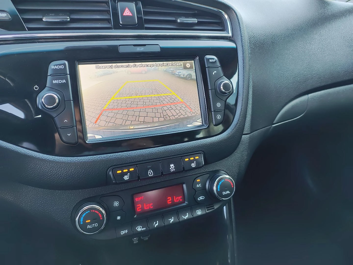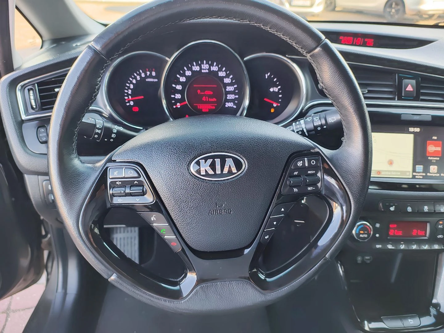 • Kia Navi System - system nawigacji satelitarnej z obsługą w języku polskim, kompatybilny z Apple Car Play i Android Auto, 7 letnim planem darmowej aktualizacji, usługami Tom Tom, 7 calowym kolorowym ekranem dotykowym, zintegrowany z systemem audio, kamerą i czujnikami cofania, antena dachowa typu „płetwa rekina”