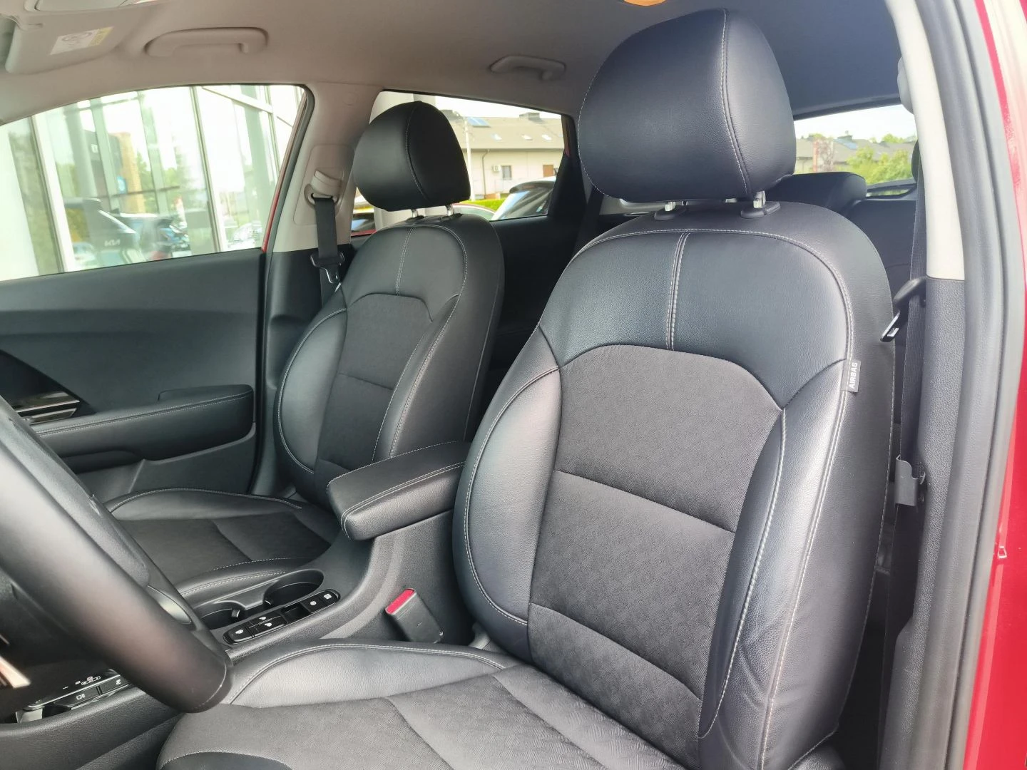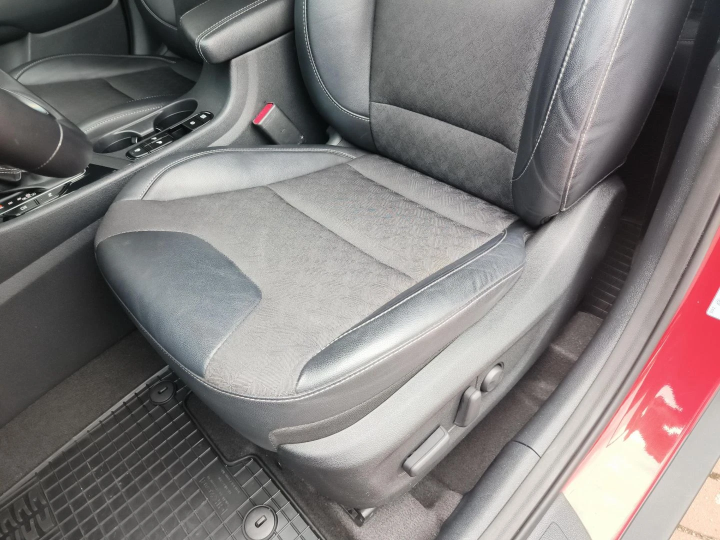 • Tapicerka skórzano-materiałowa, podgrzewana kierownica oraz fotele przednie
