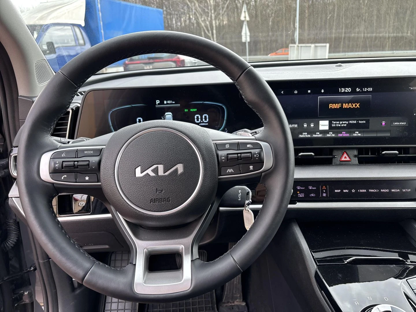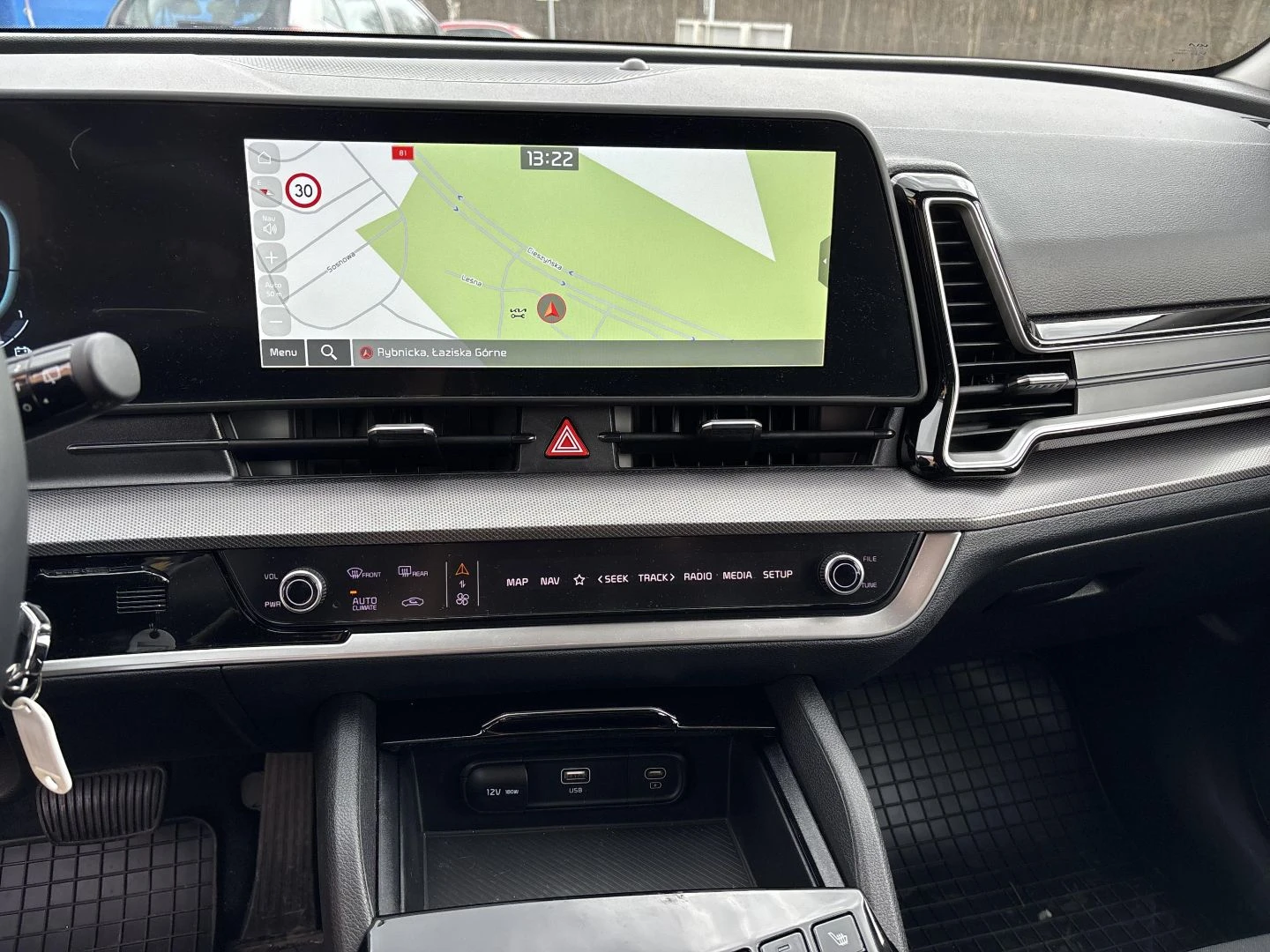 ▪ 12,3-calowy centralny ekran nawigacji satelitarnej, radio DAB, usługi cyfrowe Kia Connect, dwa porty USB-C w oparciach przednich