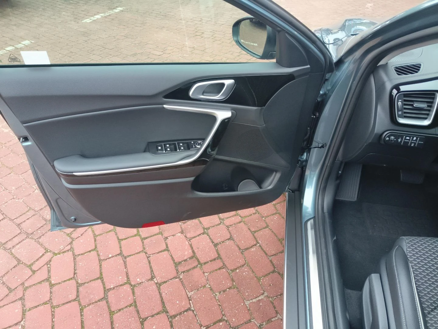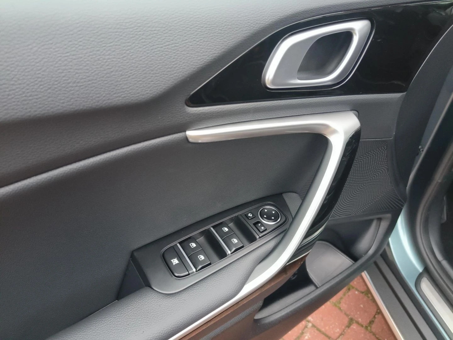 ▪ Tapicerka materiałowa z elementami skóry ekologicznej, chromowane klamki wewnętrzne, elementy wnętrza lakierowane na wysoki połysk w kolorze czarnym